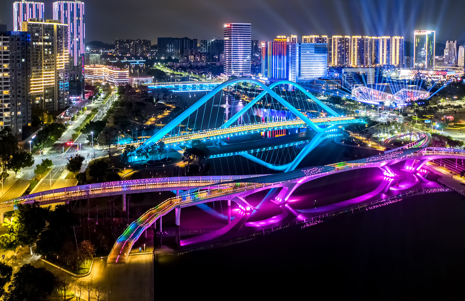 沿著濱河路從南到北,汾河將山西省太原市城市兩岸的美景串聯起來。白天,城市五彩繽紛;夜晚,城市在燈光的點綴下,繁華璀璨。