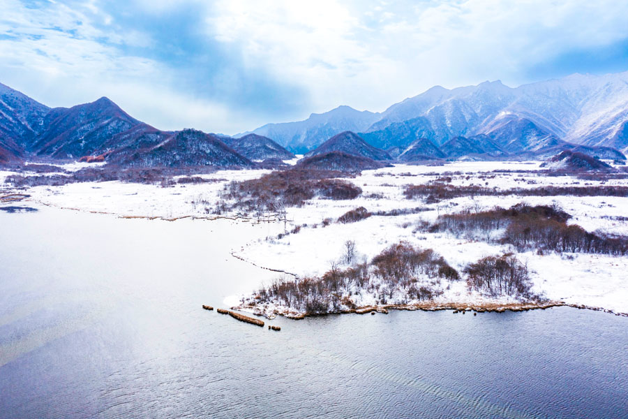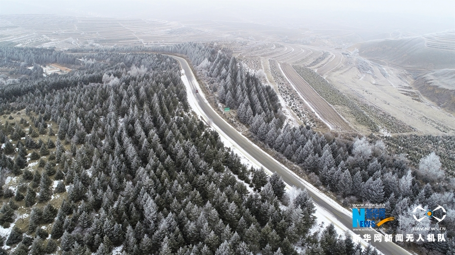 ????這是近日在甘肅省定西市通渭縣華家嶺鎮航拍的霧凇美景。新華網發 (張賽 攝)