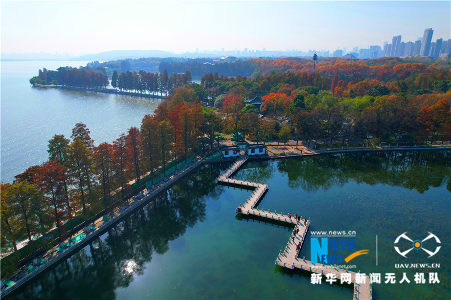 冬日里,安徽省阜陽市潁上縣五里湖生態濕地公園碧波粼粼、“杉”水邂逅,火紅的落羽杉燦若云霞,如同一幅色彩濃郁的油畫,在冬日暖陽的照耀下美得令人心醉。
