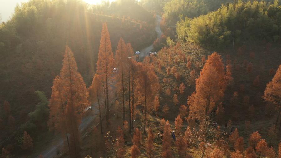 冬日時節,位于懷化市鶴城區的水杉林悄悄地換上了“冬裝”,一排排緋紅的水杉在冬日里綻放,層林盡染,美輪美奐,吸引眾多游客前往觀景。