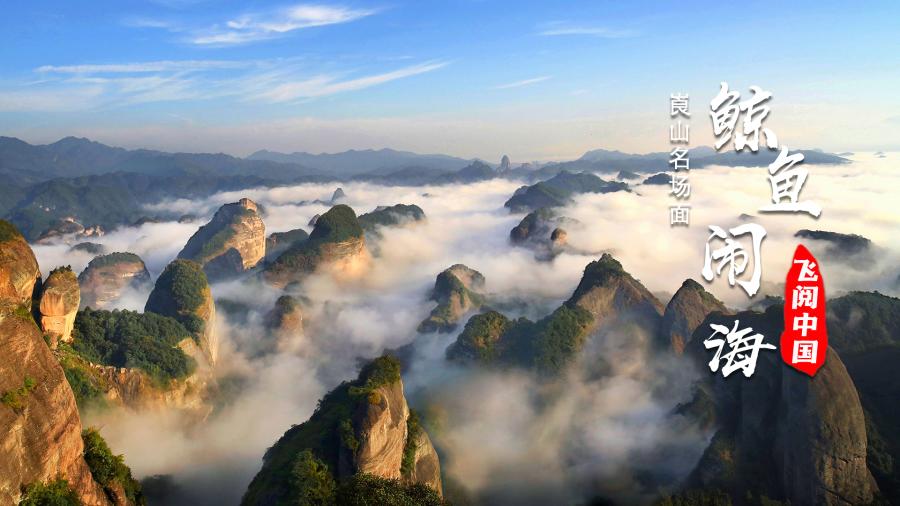 冬季清晨,崀山霧氣升騰。浮云縹緲之中,丹霞群山逶迤起伏,大小百余座赫紅色奇峰,酷似一群在云海中飛騰嬉戲的巨鯨,時而被云霧吞沒,時而露出首尾。