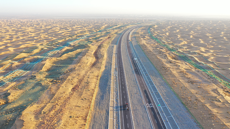 位于寧夏境內的烏(海)瑪(沁)高速青銅峽至中衛段全長122.99公里,有18公里橫貫騰格里沙漠腹地,是寧夏建設的首條沙漠高速公路。