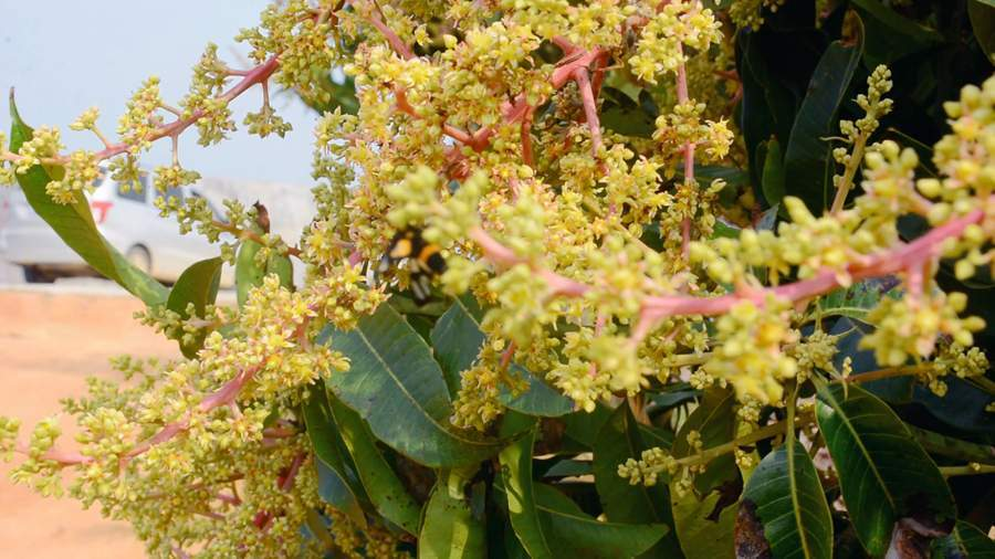 連日來,在廣西百色右江區四塘鎮六合村的全國“一村一品”芒果示范基地里,這里的17800多畝芒果樹正開著淡黃色的小花。